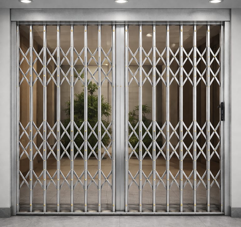 MS collapsible gates provide strong security and convenient access for shops, warehouses, and commercial spaces.
